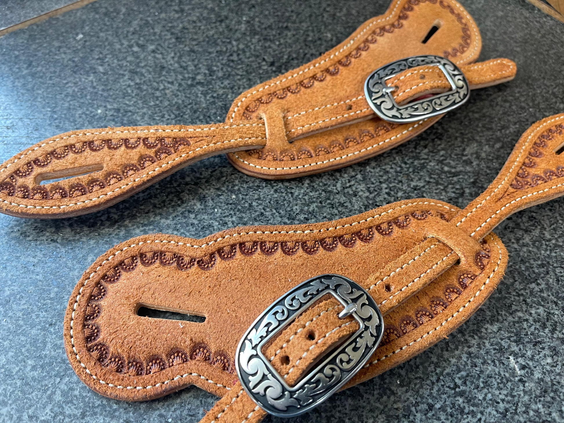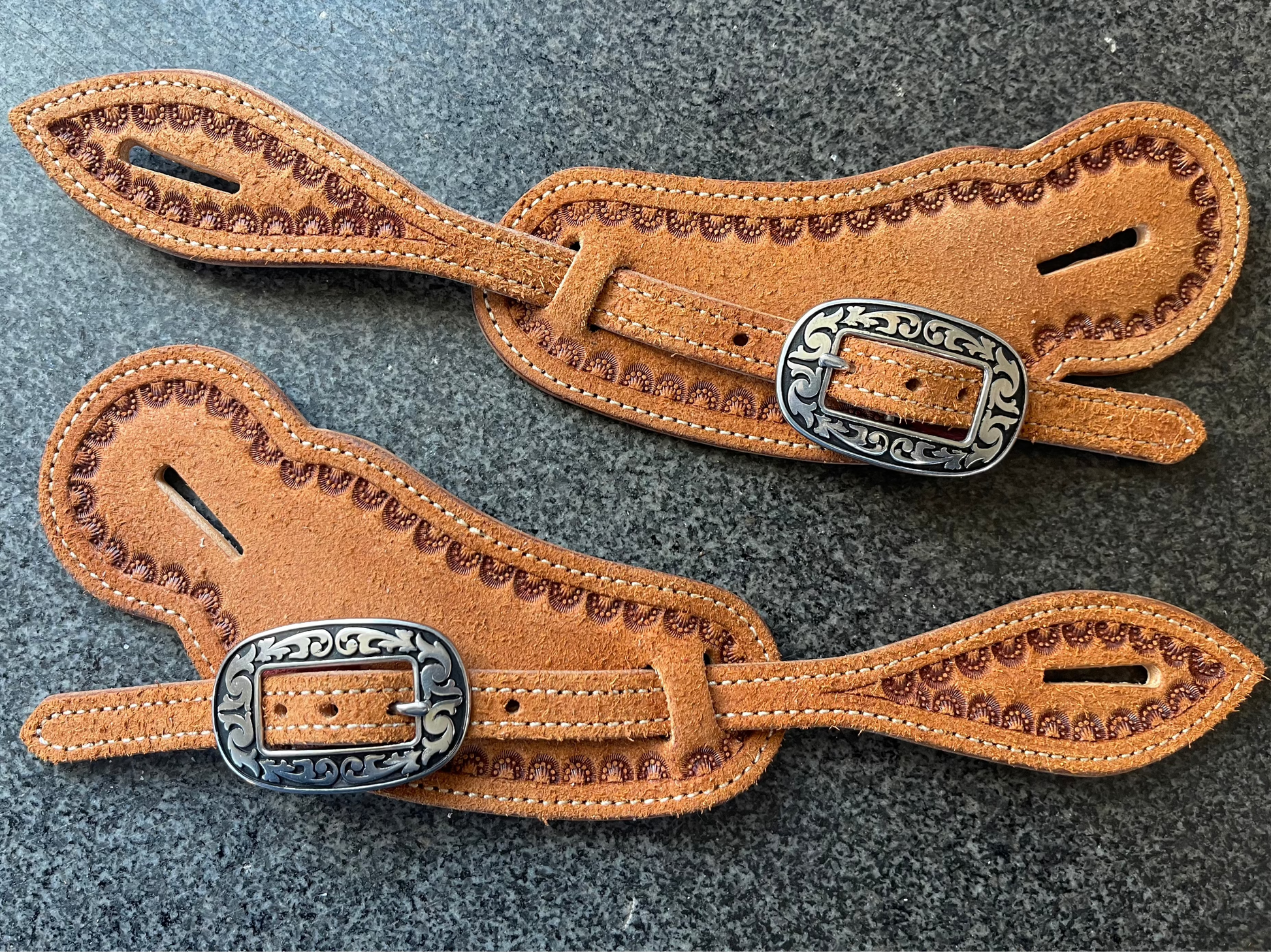 Border Stamped Roughout Large Bib Style Spur Straps Ready to Ship