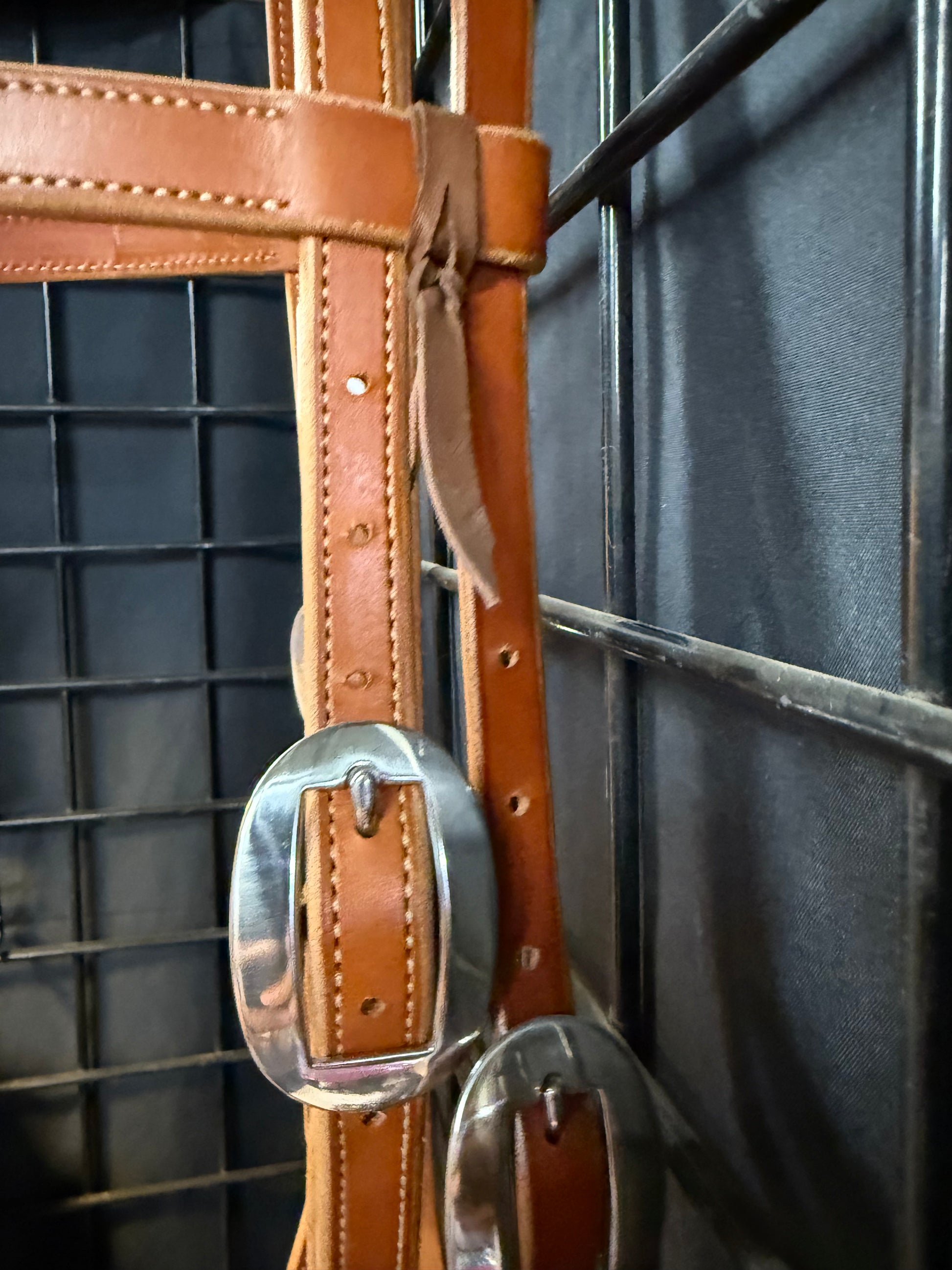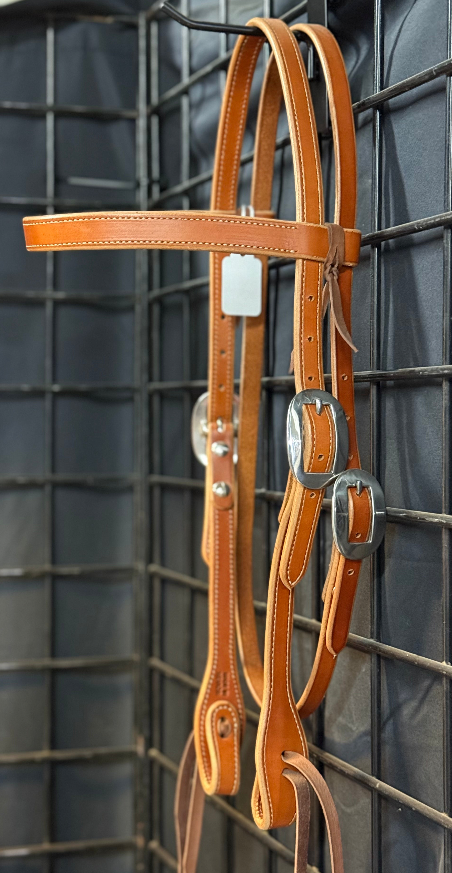 Crafted from fine bridle leather, our Browband Headstall is designed for both performance and presentation. Featuring doubled and stitched construction for long-lasting durability, this headstall includes 5/8” cheek pieces and a 3/4” browband for a balanced, comfortable fit.